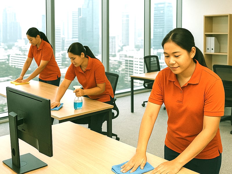 Khun Office มอบบริการทำความสะอาดทั่วไปที่เชื่อถือได้ ซึ่งออกแบบมาสำหรับสภาพแวดล้อมเชิงพาณิชย์ในกรุงเทพฯ สำนักงานที่สะอาดช่วยเพิ่มประสิทธิภาพ ส่งเสริมสุขภาพ และสร้างความประทับใจให้กับลูกค้าและพนักงาน บริการทำความสะอาดของเรามีความเหมาะสมที่สุดสำหรับอาคารสำนักงาน สถานที่ทำงานร่วมกัน คลินิก โรงเรียน ร้านค้าปลีก และอื่น ๆ